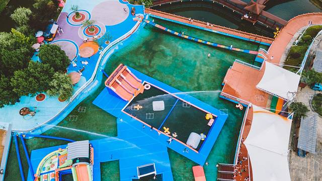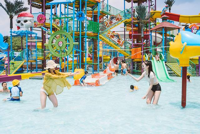 云端漂流到尽头后会落入一片水池中,可以跟朋友或陌生人互相打水仗,旁边的欢乐水寨就更是一处玩水圣地。