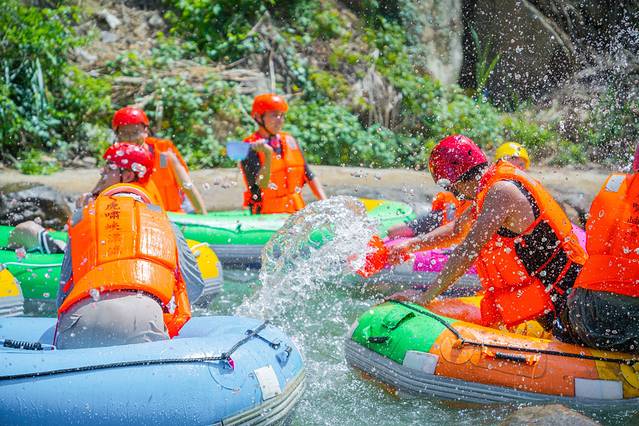 260米垂直落差,1.5小时极速穿梭在山谷里,夏日清凉体验感简直一百分!如果想要拍刺激的漂流照,一定要带上防水袋,不然这刺激的水花真的分分钟把手机带走。