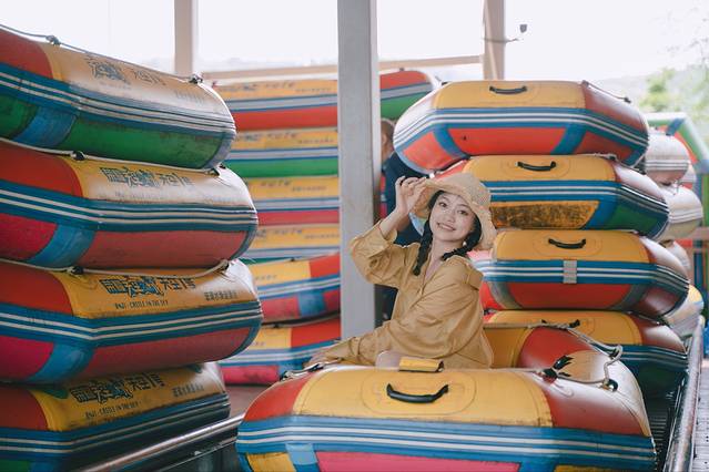 来到位于山顶的起漂点,两人一艘艇,坐在皮划艇里抓好扶手,伴着号令出发,迎接而来的是S型、U型、Z型以及360度大回环弯道,就好似过山车般穿梭其间,水花四溅,俯冲漂移,速度与激情般的心跳体验,无与伦比的身心释放,这样的身心体验才能称为云端漂流。