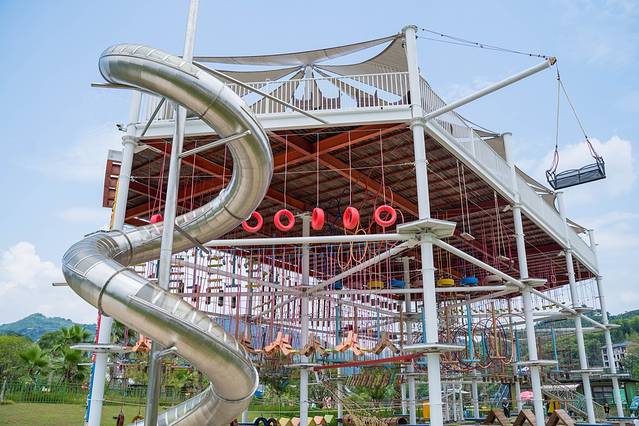 作为一站式的亲子嘉年华,荣耀天空之城的玩乐设施可以说是应有尽有,除了漂流、水乐园,这里还有户外拓展项目,名为荣耀之星,这里可以说团建、锻炼孩子能力的好地方,这里也是成人以及儿童的玩乐区、探险区。