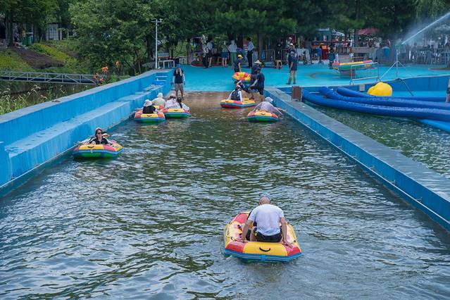除了水上城堡的各种滑梯,这里还有着许多其他有趣的水上玩乐设施,比如网红桥、摇摆桥、独木桥、水上冲关桥、喊泉、小游船等等。在这里,站在摇摆桥上,许多人都迫不及待的想要掉下桥,落入水中,享受这清凉又愉快的旅途。