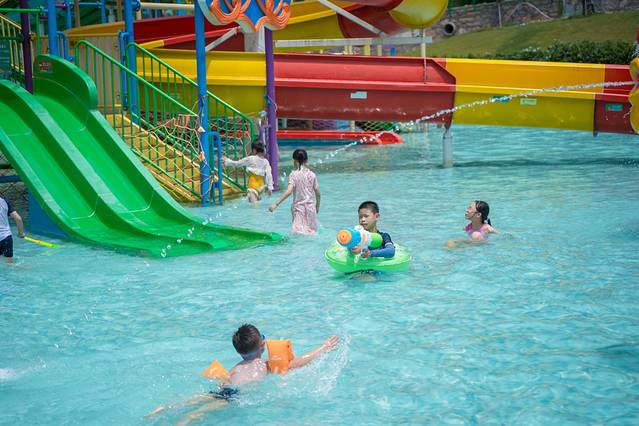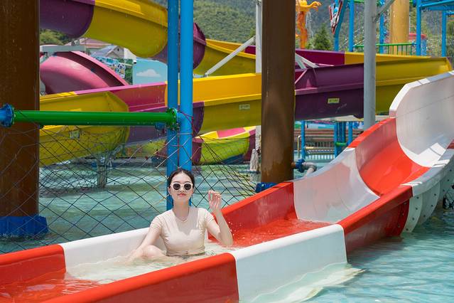 来到欢乐水寨,这里的丰富的水上项目让我无比惊喜,螺旋滑梯、彩虹滑梯、高速滑梯等,12座各具特色的滑梯,无论你是否喜欢刺激,总能找到适合你的那一座滑梯。我是一个喜欢刺激的人,最刺激的滑梯足有三层楼那么高,当然不能错过,从最高点一滑而下,越来越快的速度让我忍不住的大叫,当最后落入水中,冲起的水浪让我感到无比的酷爽。