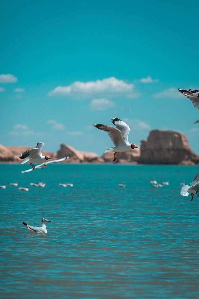 成群的水鸟和野鸭,或翱翔在湛蓝的天空中,或戏水在微光波映的湖水里,或在雅丹之上奔跑追逐,波光粼粼的午后,这样美的场景时常让人恍惚是不是在梦中,因此这里又被人们称之为“百鸟千岛湖”。