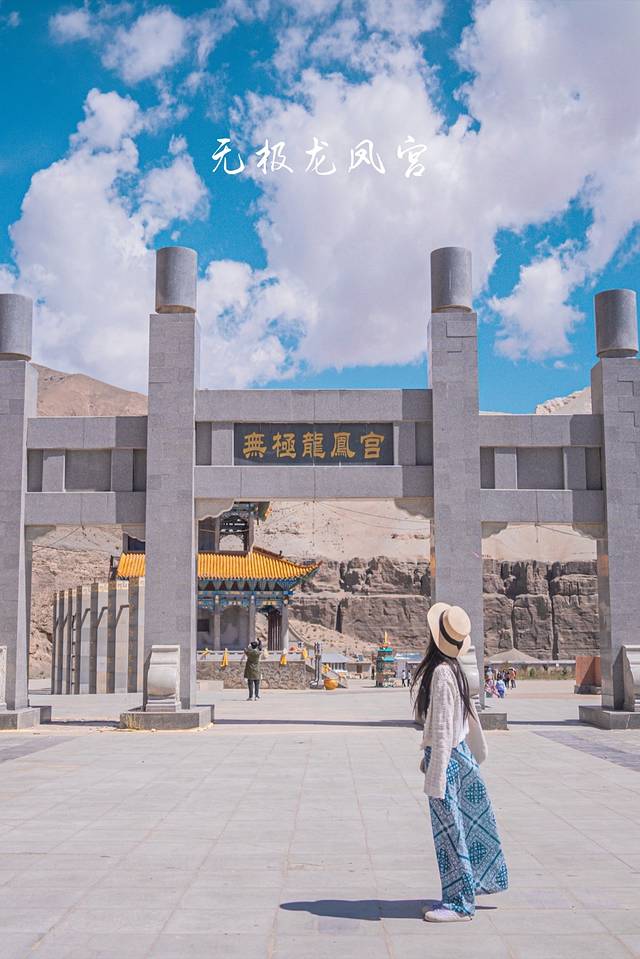 沿着格尔木西南继续往前,青藏公路109国道行驶的地方有一处无极龙凤宫,出现在我们眼前。这里位于格尔木西南120千米处的青藏公路旁,海拔3800米,这是昆仑山脉最有代表性的宫观,比我国任何道观的海拔都要高。