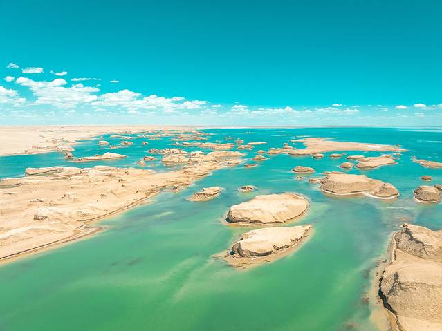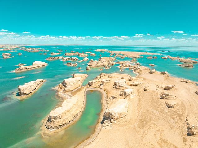 “水上雅丹”这4个字是我收藏在旅行清单好几年的念想,为那世界唯一,为那星罗棋布的小岛,为那雅丹之眼,终于从格尔木出发近4小时来到了这里。