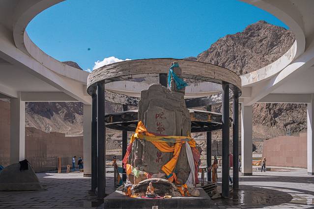 这里据说是姜子牙的得道地,有姜子牙及其坐骑四不象的雕像,还供奉着十世班禅大师像。这里是道教昆仑派的道场,没什么游人,也不要门票,它从格尔木出发去可可西里或者进藏,都会经过这里。无极龙凤宫广场的正前方供奉有姜子牙的立像,但见他神情庄严望向远方,仿佛淡看数千年的沧海桑田。昆仑山作为“万山之祖”和道教的发源地,各种传说不计其数,据说道教昆仑派就是在这里诞生的。