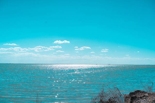 午后我们驱车来到这里,波光粼粼的湖面中间,是一望无垠的公路,湖底有大量石盐沉积,资源丰富,与东湖不同,西湖湖水的颜色呈现湛蓝色,站在315国道上,你会发现两个湖一个鲜绿一个湛蓝,泾渭分明,让人一眼看到就感叹不已,惊讶于大自然真的是神奇的造物主。