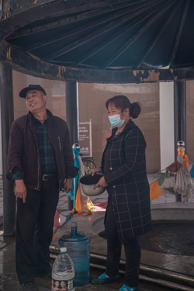 我们路过这里的时候,有很多当地的老人提着很大的水桶过来打水喝,路过的司机和旅人也特意停留在昆仑圣泉,用水杯接上一杯圣泉水,甘霖解渴的同时,也在寻一份幸运。