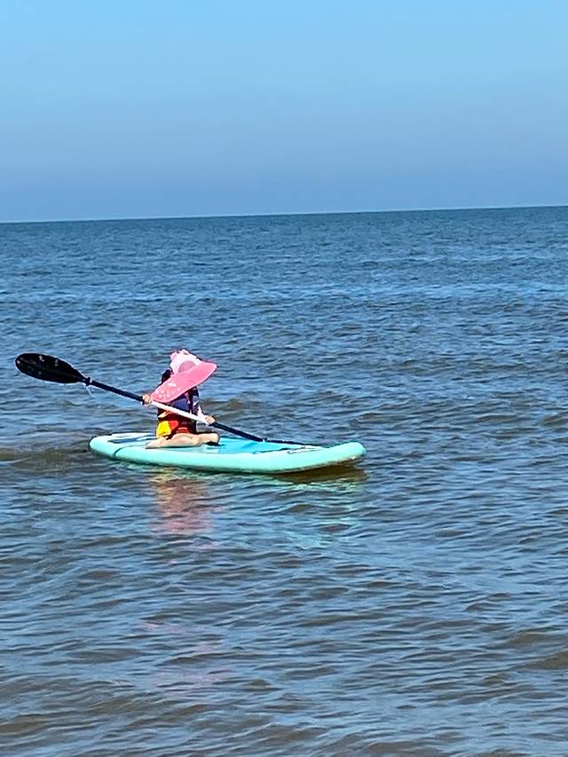 明明是冲浪板,让她玩成了皮划艇的感觉~!