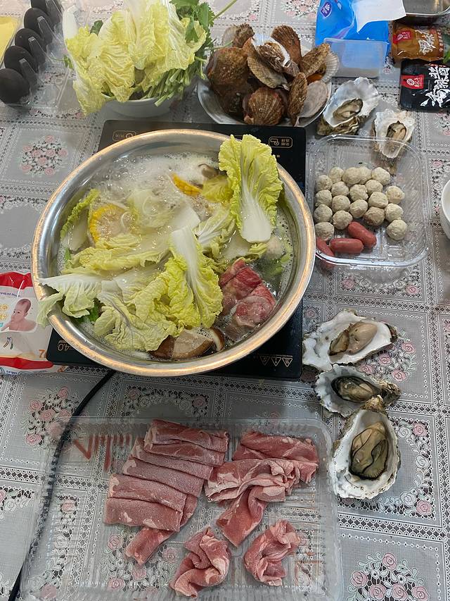 明天就好回去了,把家里剩的菜什么的做成一顿火锅哈哈哈~!又买了点海鲜~!海鲜就得赶早去买~!