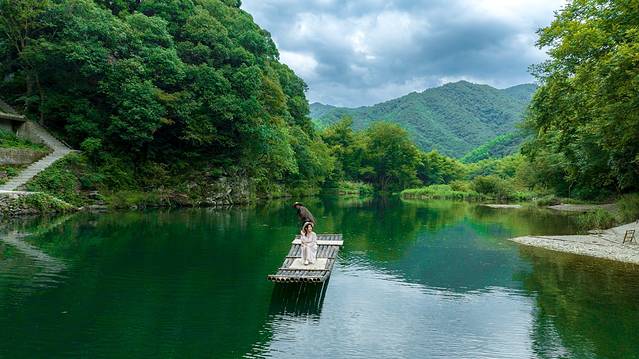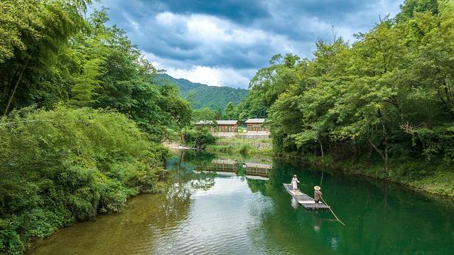 清溪河下游河段的水墨黄姑户外运动基地,是一处鲜为人知的小众打卡地,一条s弯河道环抱着一处半岛,要坐上竹筏才能够到达对岸,在这里可以露营戏水、竹筏漂流,吃吃农家饭、体验一番世外桃源的慢生活。