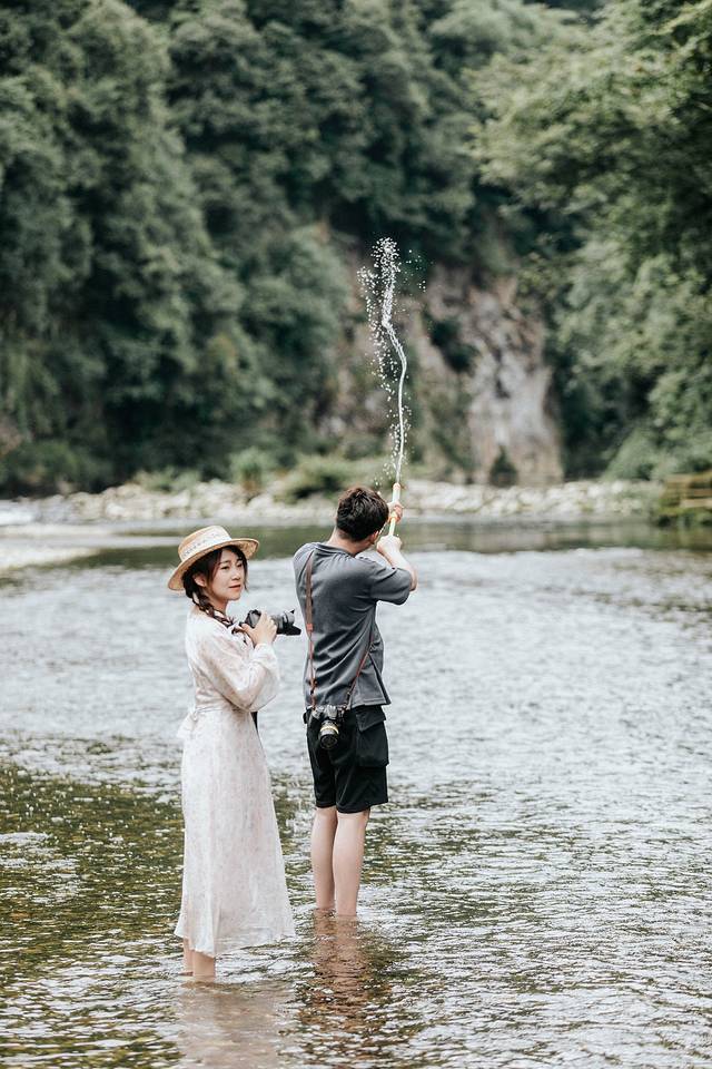 竹筏漂流的终点是一处平缓的河床,河水清澈凌冽,是天然的水上乐园,也是绝佳的消暑之地。