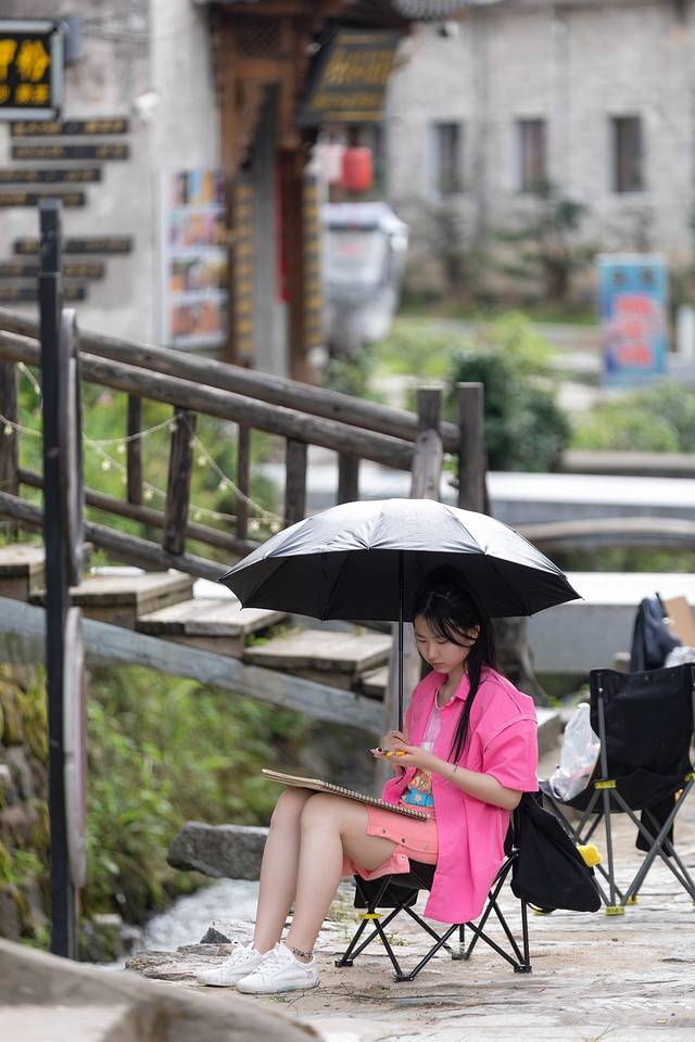 古老的木桥上,恰来写生的孩子们笔下生风,描绘着自己眼中的屏山画卷。