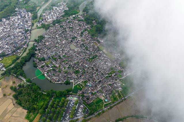 宏村始建于南宋时期,绵延至今已有千年历史,以独特的“牛形村落”而闻名遐迩,因为从高处看,整个村庄宛若一头斜卧山前溪边的青牛。