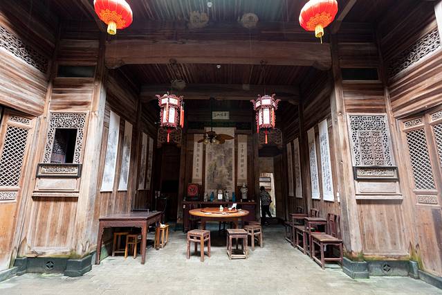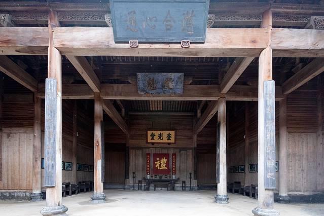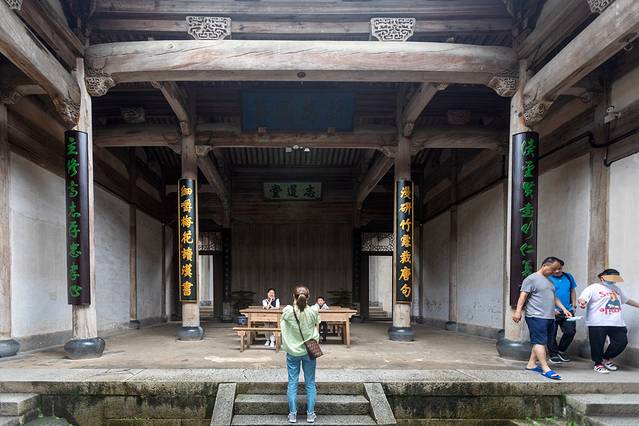 从村头到村尾三百多米长的轴线上,风格古雅的八个大小祠堂组成的祠堂群,蔚为壮观;至今仍完整保存着八座古祠堂、近三百幢明清古建筑,“奎光堂”、“叙秩堂”等祠堂结构庞大、气势恢宏;
