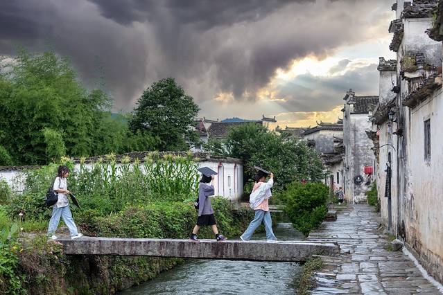 春意秋色是固然是黟县最绚烂的色调,而急雨骤歇后的绚烂烟霞,晚风吹拂的夏夜,夏日同样让人向往,。