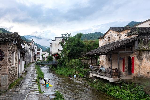 黟县有一条美溪河,两岸绿水青山,古树参天,蜿蜒曲折,风光迤逦,被称作三十里水墨画廊。