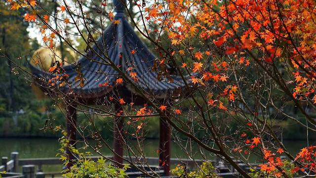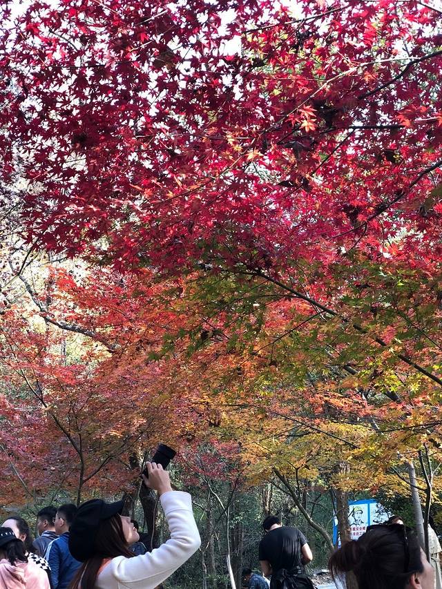 待到秋意更浓,便去栖霞山看枫叶。古老的寺庙里满是红艳艳的叶子,像极了杜牧《山行》诗中“停车坐爱枫林晚,霜叶红于二月花。”描绘的场景。南京秋天的美是一种带着岁月沉淀的美。
