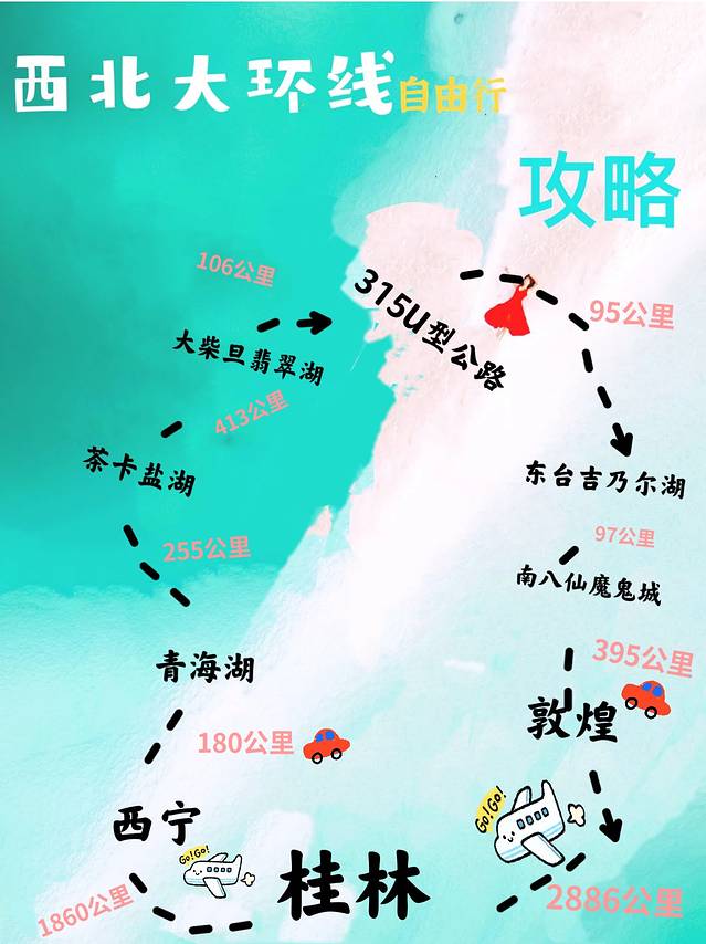 整张路线图独家绘制♡,详细公里已经标注出来。