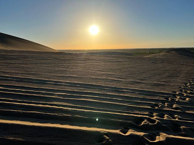 但是我们约了摄影师拍照,就不爬人多的沙漠了,沙漠后山是免门票的,有个露营基地,会有很多刺激的沙漠项目和露营。