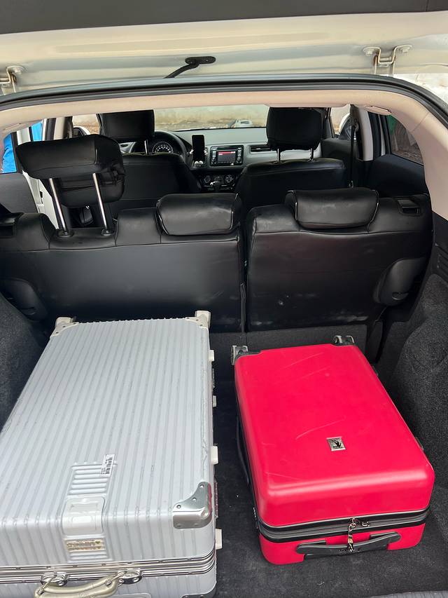 我们两个人的行李不多,两个行李箱整整齐齐放在后面。后座准备了水和零食,纸巾,湿巾西北大环线一路上很多地方没有信号,而且一百公里这样才有服务区,所以我专门备了一个手机导航,这里推荐高德导航。
