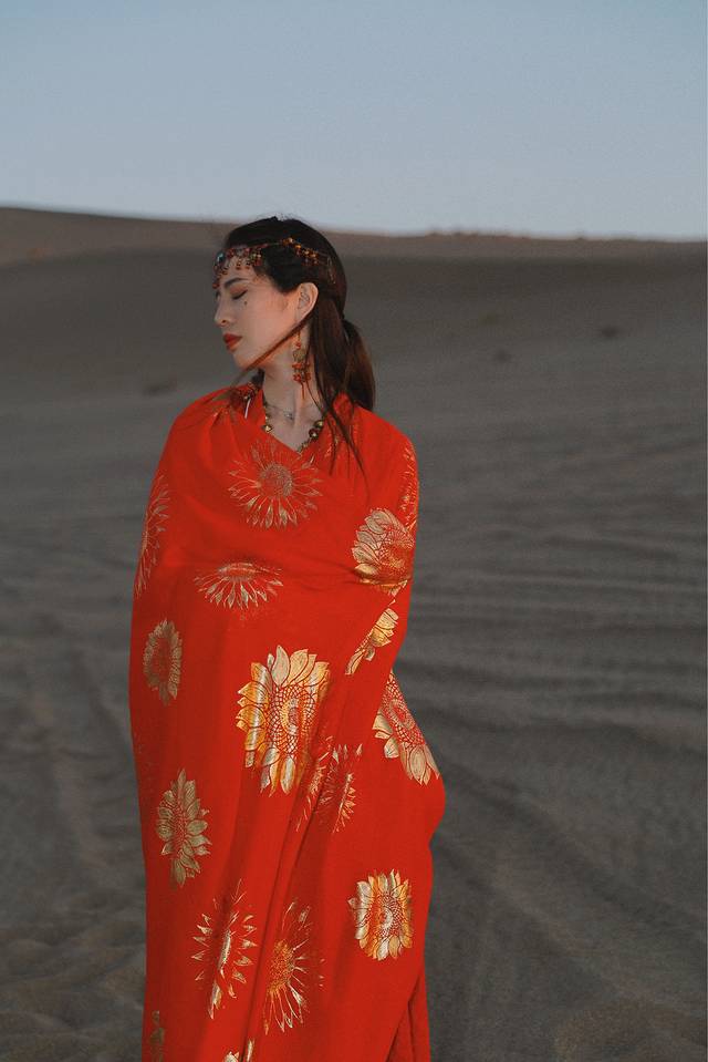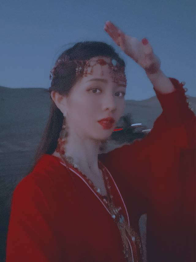 沙漠里太适合拍这种民族风了,在敦煌夜市花30元买的面饰真的太值得了。