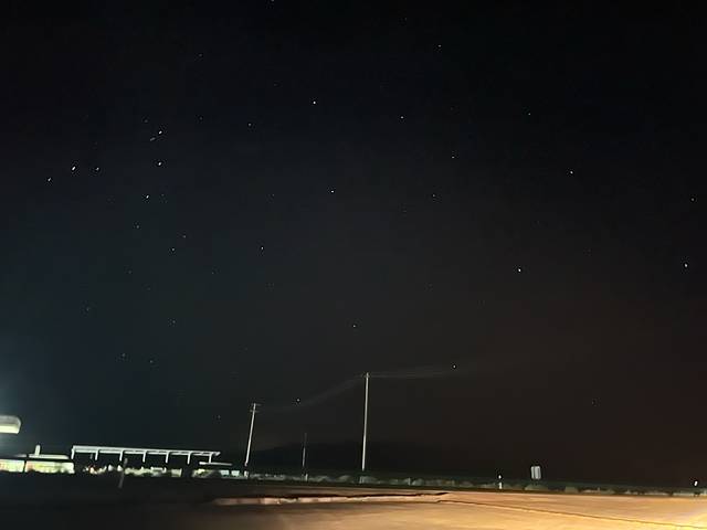我们大约晚上11点到的大柴旦镇,星空真的太美了,抬头一望,满天繁星闪闪发光。