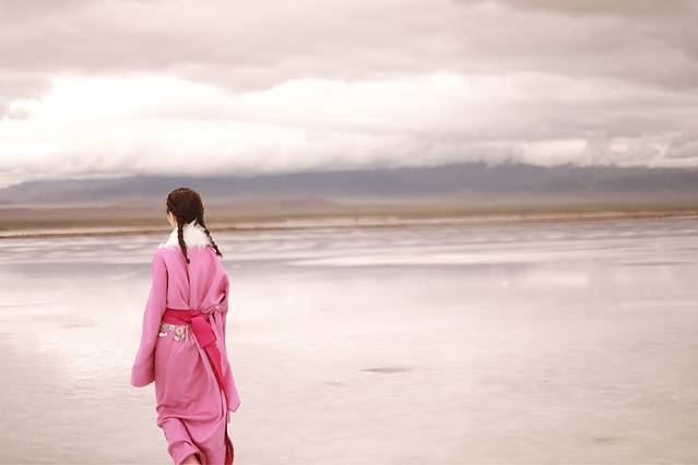 喜欢这种一望无际的孤寂感觉,穿着藏服走在茶卡盐湖里,感受这岁月的沧桑,多少年的变化才能形成这湖天一色的美景。