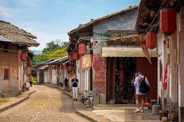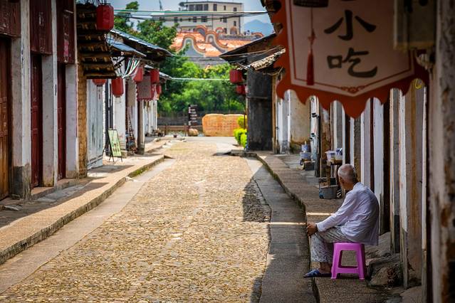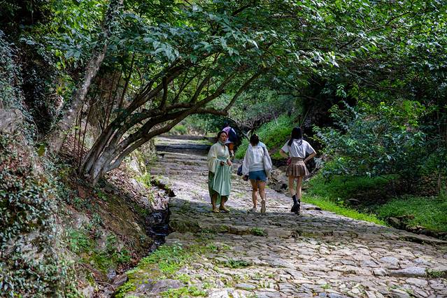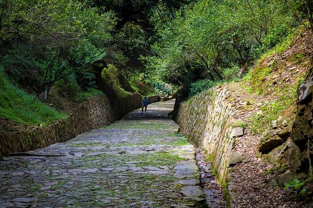 千百年过去,古道曾经的繁华早已成为历史,青石板上斑驳的痕迹见证了它的风霜。沿着石阶慢慢前行,依稀还听得见马蹄声碎,仿佛看见前方有一队商人挑夫,带着满满的货物与寄望,运往港口的大商船,驶向遥远的大海彼岸。