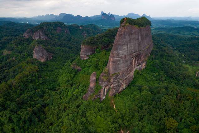 丹霞山的观日亭是丹霞山群山中可以一览众山小的制高点,可以乘坐索道直接上山,阴雨天的丹霞山似乎更有一丝韵味,时而天空晴朗,时而天空阴沉,偶尔可见一道霞光从云层射出,在观日亭放眼丹霞四周群山,丹霞山的巍峨壮观尽收眼底,像是遨游人间仙境中。