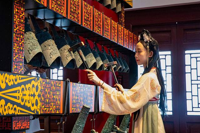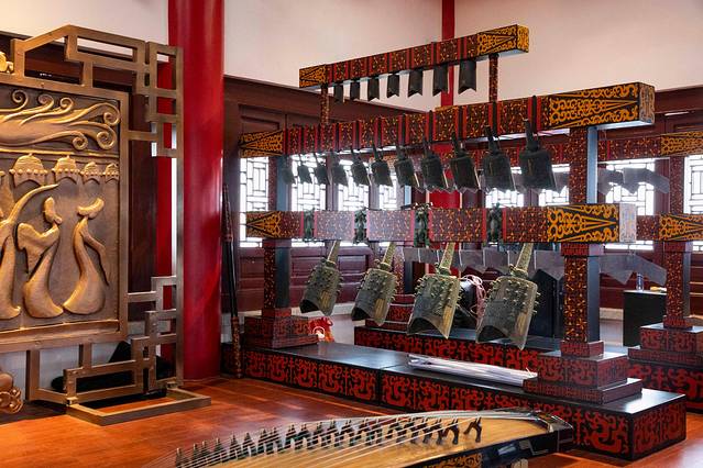 韶阳楼的一层内就有一座古塔基的遗址,现在的韶阳楼保护的就是这原有的历史遗迹,韶阳楼各楼层均设有一个文化主题,每一层都有不同的主题,一层层走上楼顶,看过每一层关于韶关的介绍,让人更加的了解韶关历史文化,在五层还能收到艺术的熏陶,精彩的编钟和古筝表演,演奏出的音符回荡在韶阳楼中,此情此景是如此美妙。
