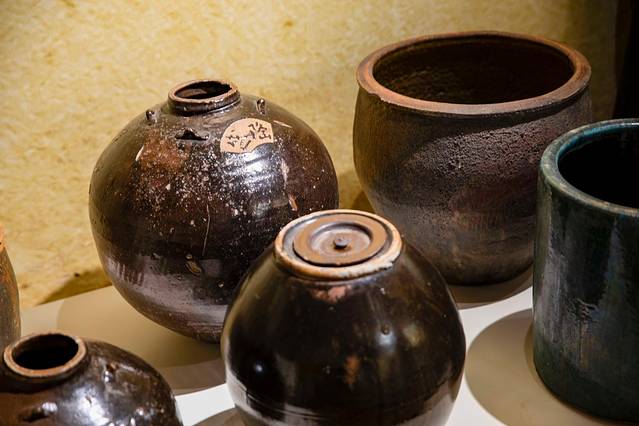 都在二楼的展示区中隆盛酱园流传下来的很多古老的器具,如打酱油提子、漏勺,令我回忆起小时候拎着空瓶到杂货铺打酱油的经历,随着时代的进步和社会的发展,现在的小孩子已经不像我们小时候一样了拎着酱油瓶打酱油,对以后的孩子来说,这些器具都是妥妥的文物。