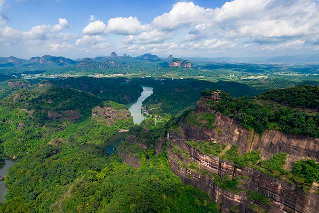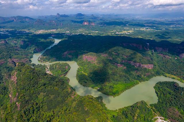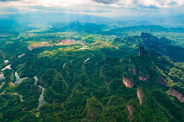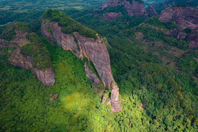 丹霞山地形起伏错落有致,以奇险壮丽为名,拥有造型最丰富的丹霞地貌,依山傍水的丹霞山不仅有壮丽的山峰,也有一条充满柔情的锦江穿过丹霞山,蜿蜒的锦江就像是一条碧绿的玉带,与周边绿意盎然的田园风光相互映照,让丹霞山更多了一丝柔情,丹霞山地形起伏错落有致。