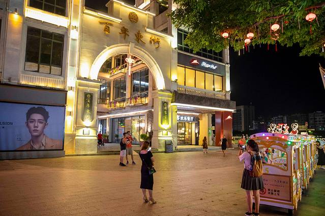百年东街位于韶关市浈江区东堤路一带,这里曾经是粤北地区最繁华的商业街之一,在古时候这里是岭南人进出中原地区的集散地,是广东湖南江西三省交界最繁华商贸街,现在的东街既有浓厚的历史气息,也有一座城市该有的现代艺术美感,东街屹然成为了韶关夜晚的好去处,它不仅面向游客也受本地人的喜爱。