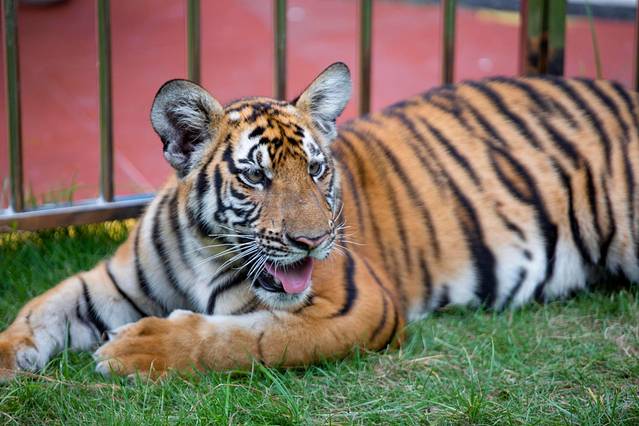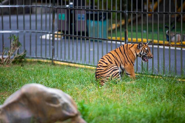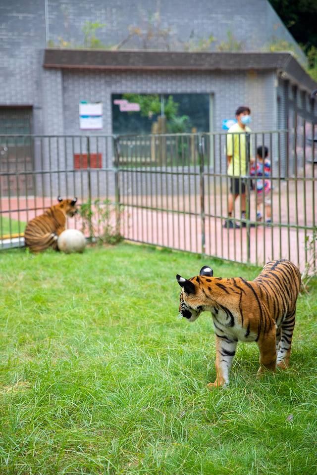 华南虎园中最有意思的要属“莲花”和“芙蓉”这是两只双胞胎小老虎,在室外的场地可以只隔着一个护栏超近距离的观赏两只可爱的小老虎,看着他们在草地上尽情奔跑的样子真的是太可爱了,没想到大名鼎鼎的森林之王,小的时候没有一丝霸气,它们就像一只猫咪一样可爱。
