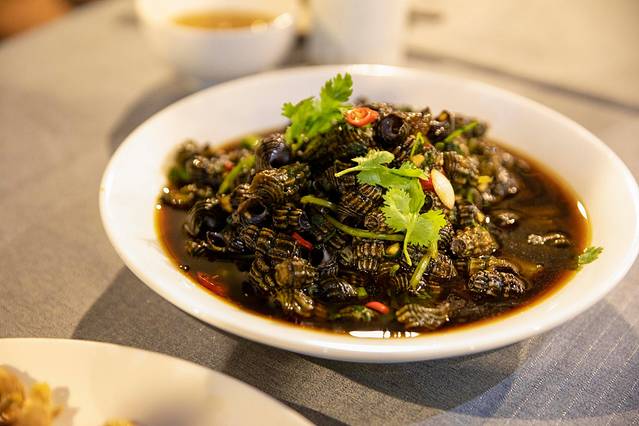 韶关仁化特有的一种螺,螺的贝壳纹路特别的粗糙,不过好在肉质细嫩,蘸着浓郁的汤汁,非常的好吃。