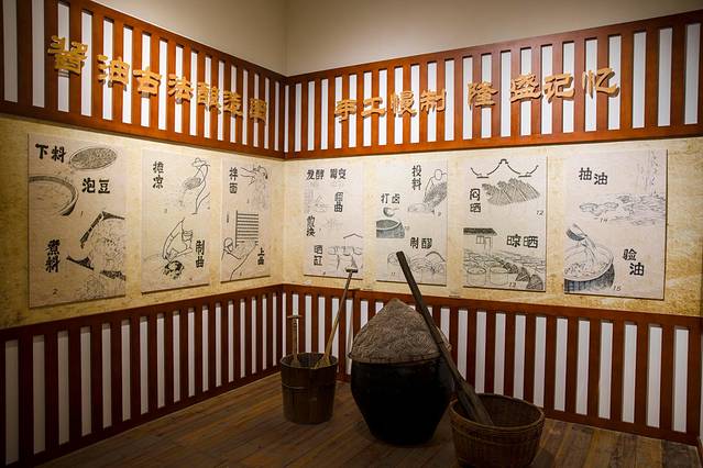 骑楼结构的酱园博物馆,给这个老品牌又增添了一丝悠久的年代感,酱园博物馆一共有三层,从酱园文化的介绍,再到传统的制作工艺器具,最后还有科技交流的互动体验区。