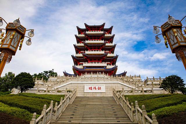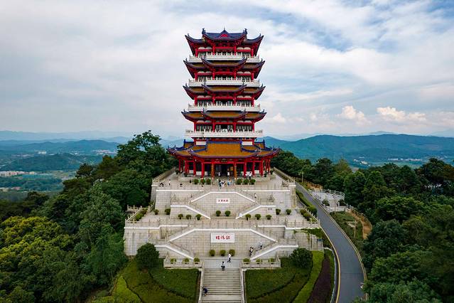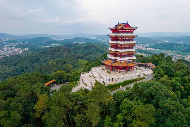 这座坐落在韶关森林公园中莲花山顶峰的邵阳楼,算得上是韶关的地标性建筑,韶阳楼的大气壮阔只有亲身站在它的面前你才会有所体会。登顶这座五层高的阁楼,便能看到韶关市区的城市景色,这也许是欣赏韶关这座城市最好的观景台之一,连绵起伏的山脉和一条条穿过城市的江河尽收眼底。