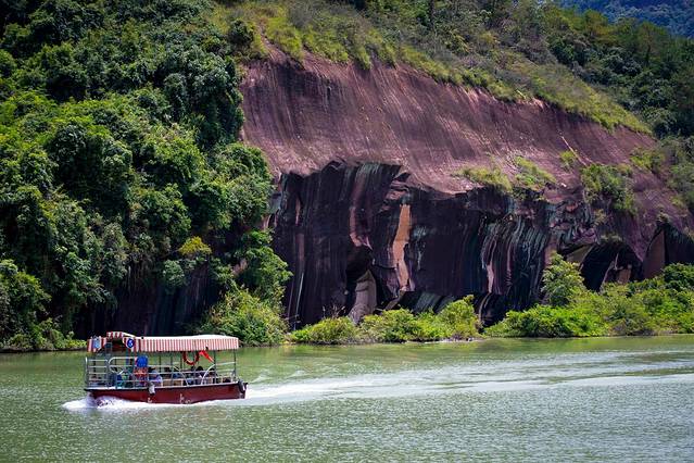 如果说山间的丹霞地貌无比壮阔,那么丹霞之秀,主要秀在锦江,最好游览锦江的方式便是乘坐游船,锦江两边翠竹夹岸,富有岭南风情的山村田园风光掩映其间,其秀丽的分光并不逊于桂林山水。