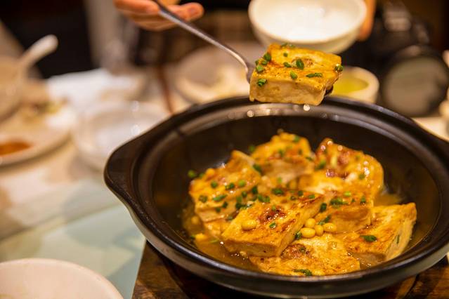 客家煎酿豆腐是一道客家传统美食,豆腐外皮在小火慢煎中有些许酥脆,一口咬下豆腐的清香和猪肉的鲜香,让人回味无穷。