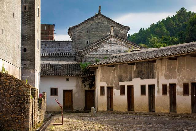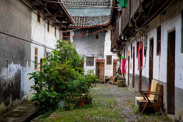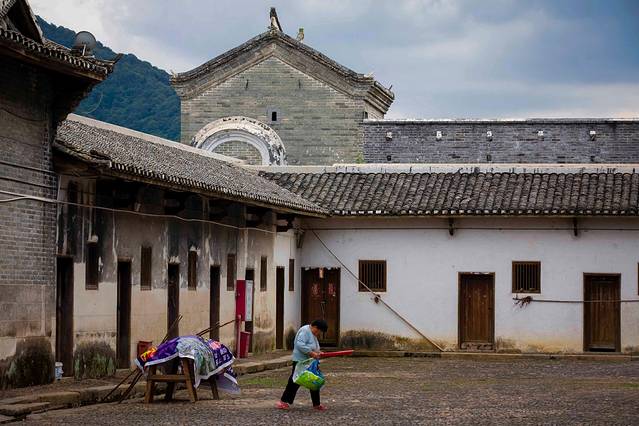 虽然和不远处的现代乡村显得是那么格格不入,但经岁月洗礼后的大围,那种浑然天成的美使人感叹不已。走进客家围屋,里面依然有当地的村民在其中居住,每一处都透露着浓厚的生活气息,抚触那些斑驳的墙壁,充满岁月痕迹的梁柱,似乎都在无声中诉说着这些客家围屋久远的过往