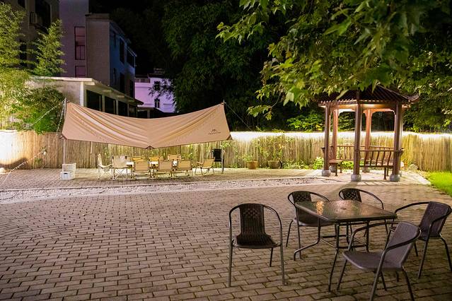 客栈外部的公共空间更适合年轻人的社交属性,简单的小帐篷,古朴的小凉亭,如果夜晚难以入睡不如出来坐坐等等山间的微风。
