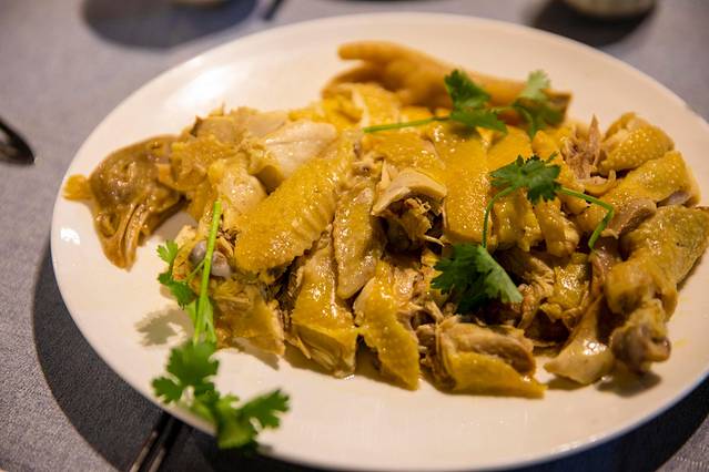 广东的餐桌上一定离不开白斩鸡,皮黄肉白肥嫩鲜美,滋味异常鲜美,十分可口,肉色洁白皮带黄油,具有葱油香味。