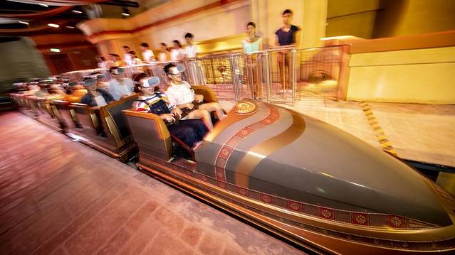 -神战:权力之眼,第一次体验室内VR过山车,整个过程最大高差12.4米,最快速度达到10米/秒,而且眼镜一戴,360度沉浸式体验就有了,在金字塔、沙漠和神殿间穿梭,刺激之余,还有一种难以言喻的梦幻感!梦与现实,就隔了一副眼镜的距离。