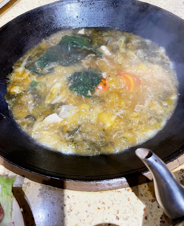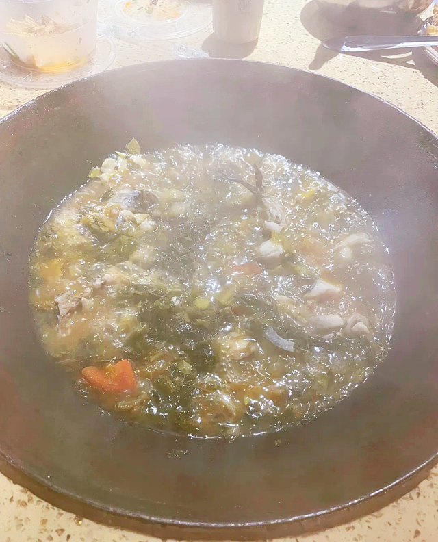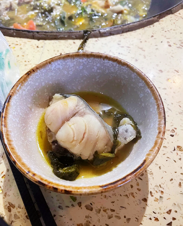 点了一条鱼,鱼刺少,鱼当场杀,肉质鲜嫩,再配上各种蔬菜,真的太棒了,味道太好喝,越煮越有味道,味道越好,汤很好喝,都整了两碗!哈哈哈!柴火鱼,必须推荐!