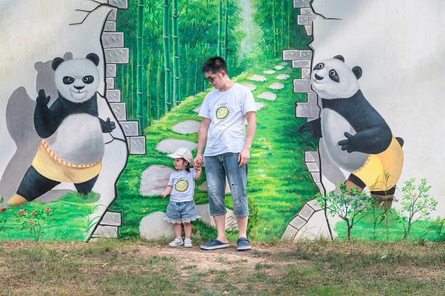 竹博园既是竹子的博物馆,又怎么少得了熊猫的加持呢!毕竟是冬奥会“顶流”,不管在哪里都受欢迎,园区内很多地方都有大熊猫的元素,就连道路上都涂鸦了大熊猫,小糖豆看得直呼可爱,每走几步就要和它们打招呼~