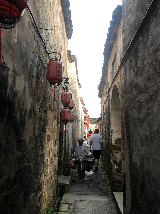 下午开车到了安徽黟县宏村,标准的徽派建筑风格,很漂亮。进去要买门票,现在半价,50,可以自由进出五天。我们订的里面的民宿,300元左右,提前打电话可以让老板来接,不然真的找不到路。我们订的村上春宿,就在月沼的后面。