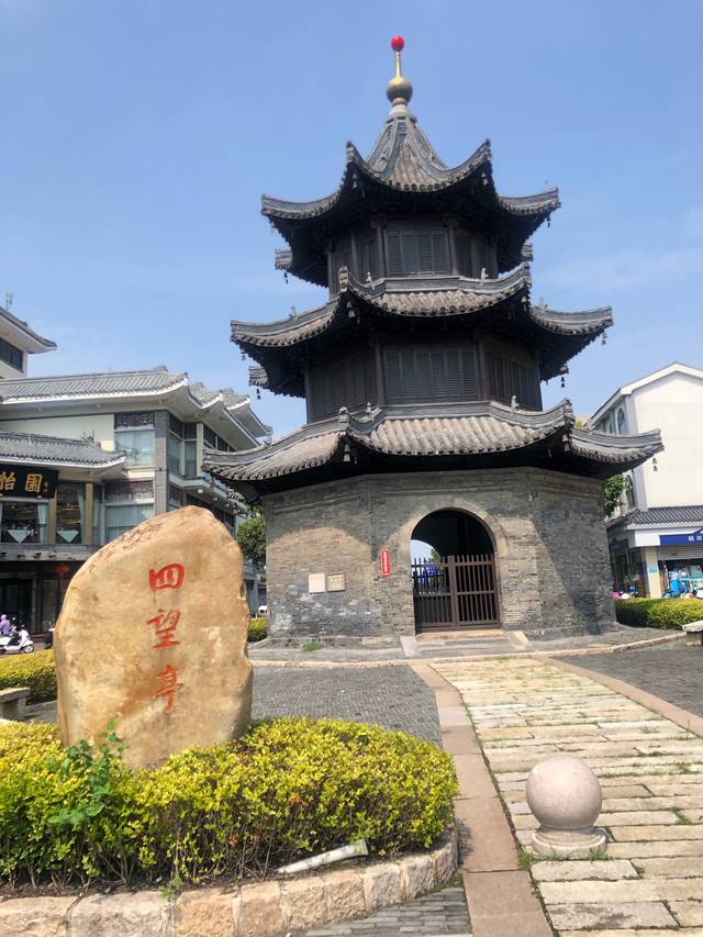 就在去吃饭旁边的四望亭,路中间,扬州特色