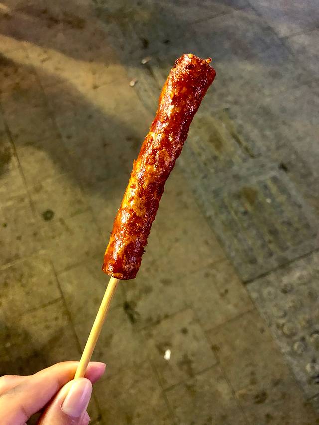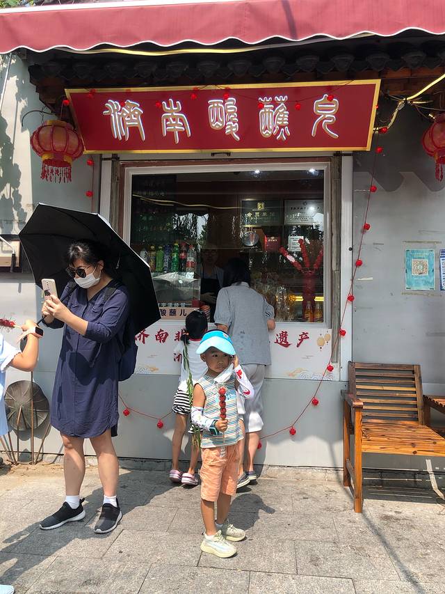 走路到大明湖,路过一家酸蘸儿,就是糖葫芦加了坚果,挺特别的,好吃!