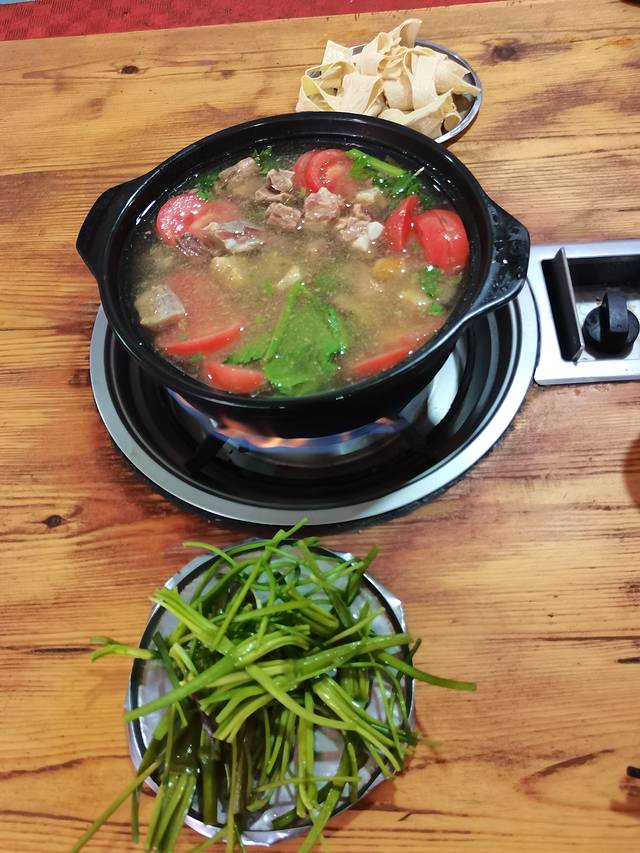 接下来我们去吃了丽江有名的火锅,钰洁腊排骨火锅,藏在象山农贸市场里,不是本地人带,一般人挺难找的。要了普通的标准锅,加了一份水性杨花、一份豆腐皮,两人也没吃完。喜欢这种红、黄、绿的配色,瞬间食欲也好了起来,自己还要了一碗米饭吃光光。